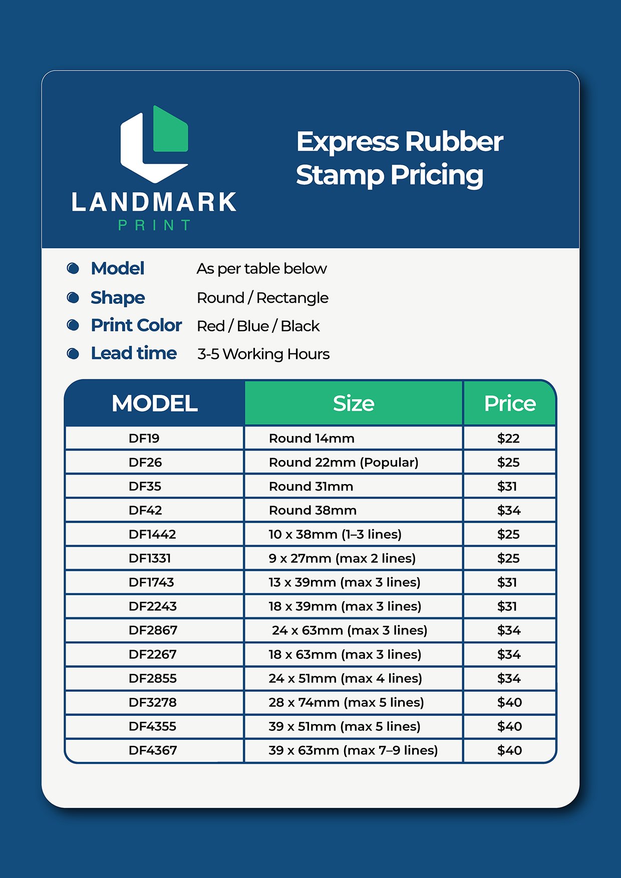 Choose Landmark Print Express Rubber Stamp – your fast, reliable, and professional solution for custom stamping needs! 🖋️📦