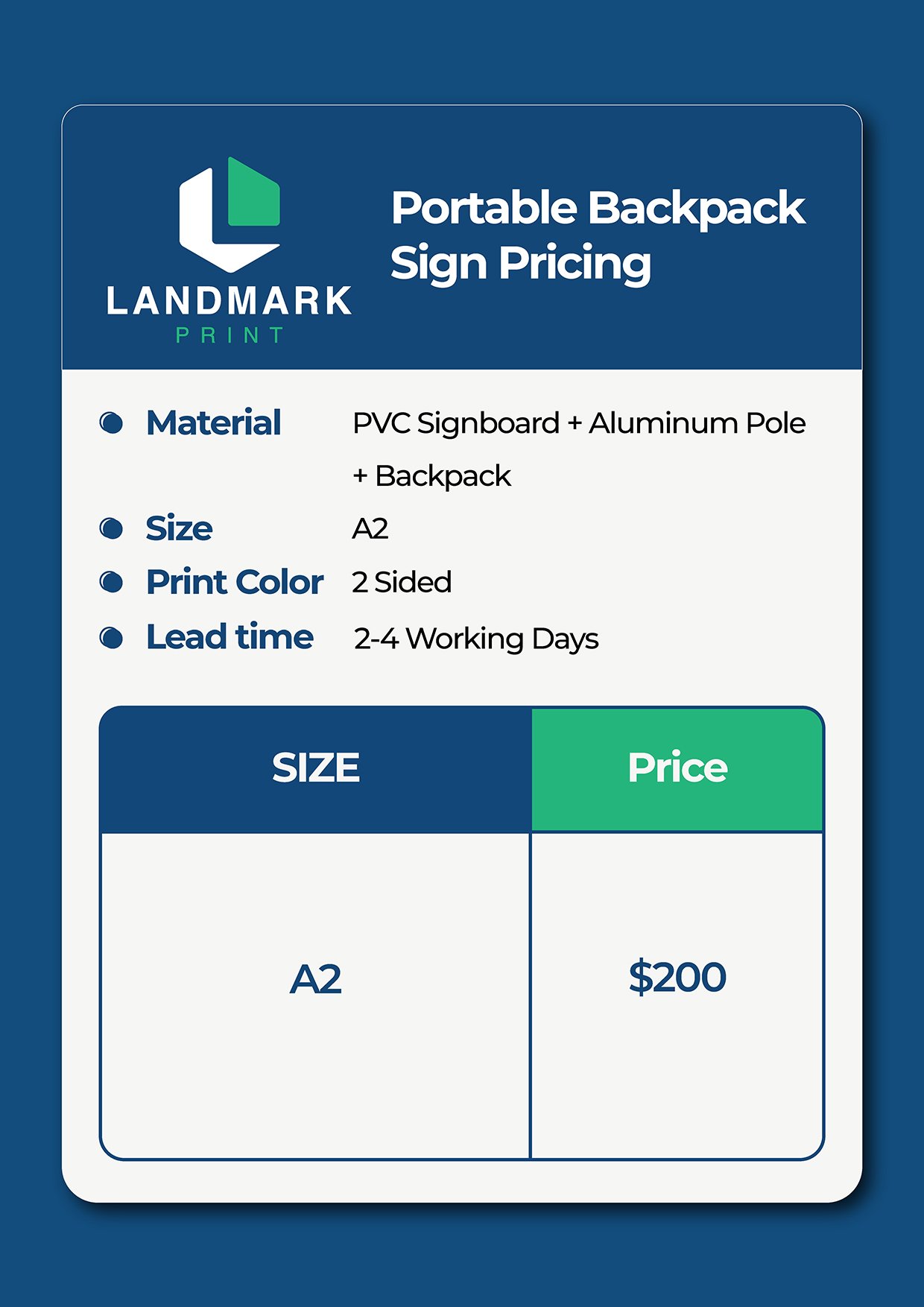 ✅ Durable Build – Made with a sturdy PVC signboard, lightweight aluminum pole, and comfortable backpack for easy carrying.