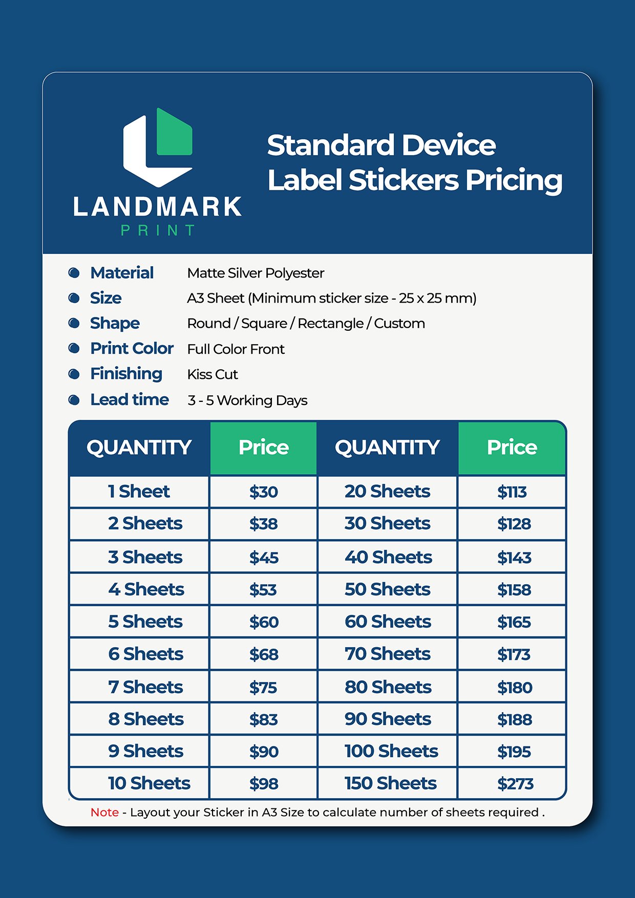 Sheet Size: A3 (minimum sticker size 25 × 25 mm)