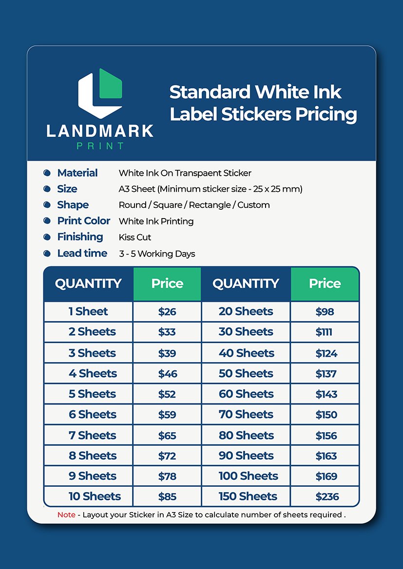 Printed with high-quality white ink, these stickers are available in round, square, rectangle, or custom shapes. Each A3 sheet is kiss-cut for easy peeling, ensuring convenience during application.
